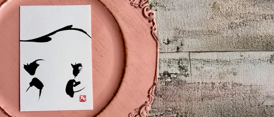 書道歴25年の久米月仙が心を込めて手がける命名書。古典に基づいた美しい線と、感性豊かな表現でお子様の名前に込められた想いを丁寧に汲み取り、誕生の喜びをやさしく彩ります。